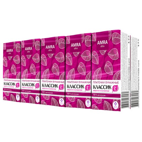 Платки носовые AMRA, 2-х слойные, 10 шт. х (СПАЙКА 10 пачек), П00067305