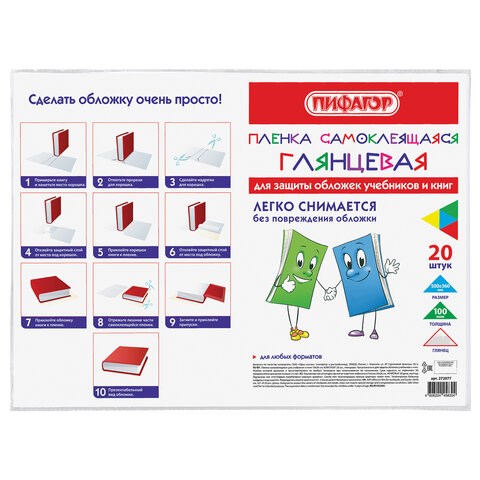 Пленка самоклеящаяся для учебников и книг 50х36 см, КОМПЛЕКТ 20 шт., глянцевая, ПИФАГОР, 272977