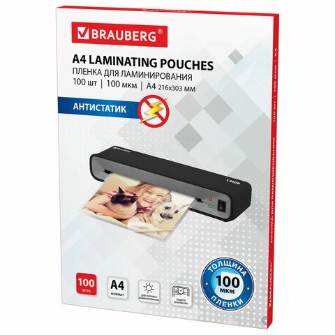Пленки-заготовки для ламинирования АНТИСТАТИК, А4, КОМПЛЕКТ 100 шт., 100 мкм, BRAUBERG, 531793
