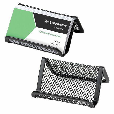 Подставка для визиток настольная BRAUBERG "Germanium", металлическая, 43х95х71 мм, черная, 231942