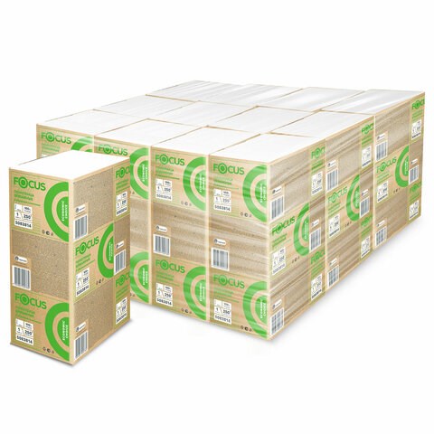 Полотенца бумажные 250 шт. FOCUS (Система H2) Eco, 1-слойные, белые, КОМПЛЕКТ 12 пачек, 24х21,5, Z-сложение, 5083814/5069958