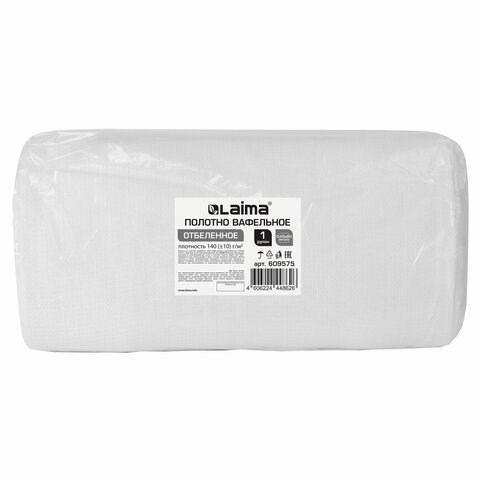 Полотно ВАФЕЛЬНОЕ отбеленное, рулон 0,45х60 м, в пакете, плотность 140 (±10) г/м2, LAIMA, 609575