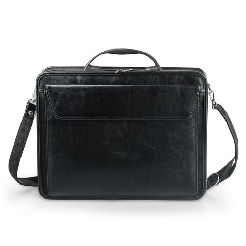 Портфель Алекс «Паритет», изготовленный из искусственной кожи черного цвета — стильный классический аксессуар для представителей офиса.