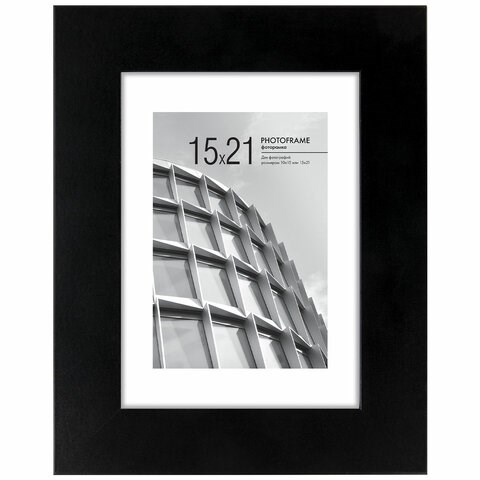 Рамка 15х21 см с паспарту 10х15 см небьющаяся, багет 40 мм, МДФ, BRAUBERG "Malcolm", черная, 391268