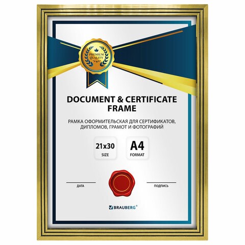 Рамка BRAUBERG "Respect" для фотографий, дипломов, сертификатов, грамот и других ценных документов гармонично будет смотреться как в офисном, так и в домашнем интерьере, а также в салонах и предприятиях, в магазинах и различных учреждениях.
