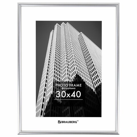 Рамка 30х40 см небьющаяся, багет 12 мм, пластик, BRAUBERG "Original", серебристая, 391232