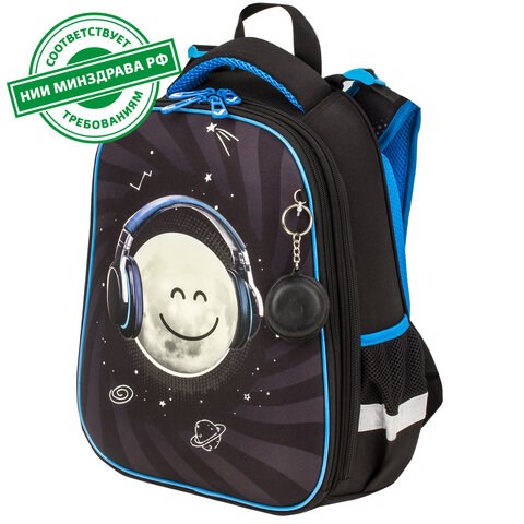 Ранец BRAUBERG PREMIUM, 2 отделения, с брелком, "Moon", СВЕТЯЩИЙСЯ, 38х29х16 см, 229905