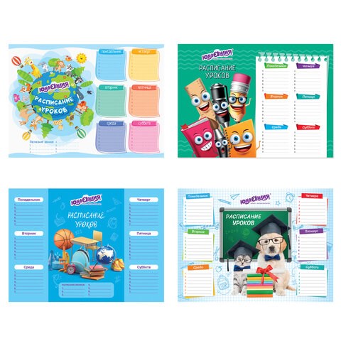 Расписание уроков и звонков А4, ЮНЛАНДИЯ, "Школьный мир", ассорти (4 вида), 111654