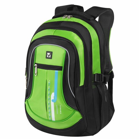 Рюкзак BRAUBERG HIGH SCHOOL универсальный, 3 отделения, "Лайм", черный/салатовый, 46х31х18 см, 225524