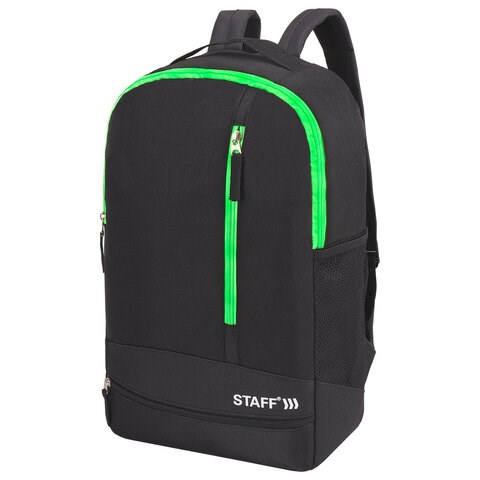Рюкзак STAFF STRIKE универсальный, 3 кармана, черный с салатовыми деталями, 45х27х12 см, 270785