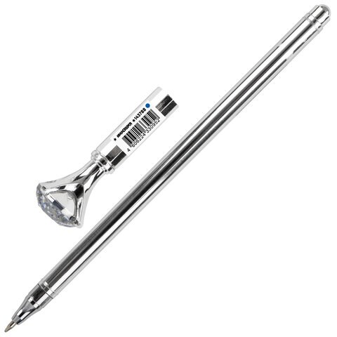 Шариковая ручка ЮНЛАНДИЯ "Кристалл" с сияющим кристаллом на корпусе.