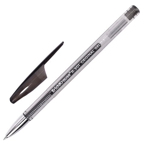 Ручка гелевая ERICH KRAUSE "R-301 Original Gel", ЧЕРНАЯ, корпус прозрачный, узел 0,5 мм, линия письма 0,4 мм, 42721