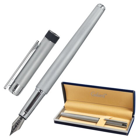 Ручка подарочная перьевая GALANT "SPIGEL", корпус серебристый, детали хромированные, узел 0,8 мм, 143530