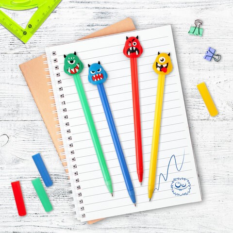 Шариковая ручка масляная ЮНЛАНДИЯ "Монстрик" с милой игрушкой на корпусе.