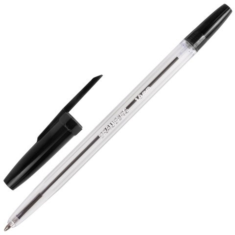 Ручка шариковая BRAUBERG "Line", ЧЕРНАЯ, корпус прозрачный, узел 1 мм, линия письма 0,5 мм, 141098