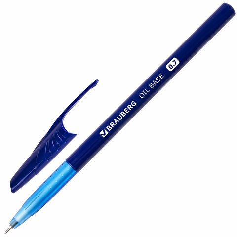 Ручка шариковая масляная BRAUBERG "Oil Base", СИНЯЯ, корпус синий, узел 0,7 мм, линия письма 0,35 мм, 141634