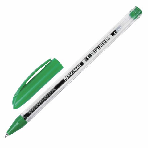 Ручка шариковая масляная BRAUBERG "Rite-Oil", ЗЕЛЕНАЯ, корпус прозрачный, узел 0,7 мм, линия письма 0,35 мм, 142149