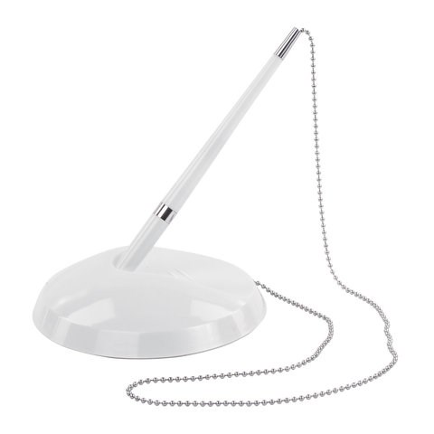 Ручка шариковая настольная BRAUBERG "Стенд-Пен Уайт2", СИНЯЯ, цепочка, корпус белый, линия письма 0,5 мм, 141348