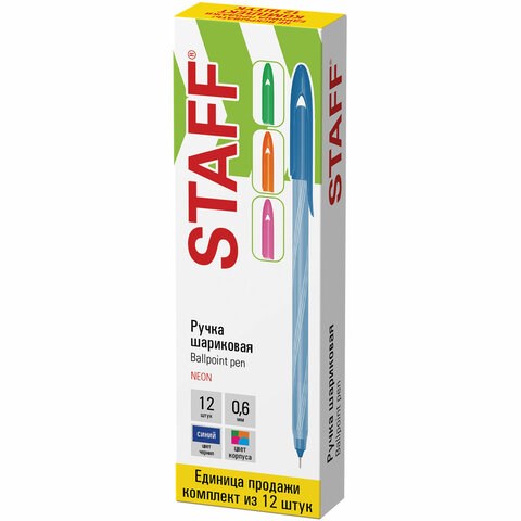 Ручка шариковая STAFF "CANDY NEON", синяя, ВЫГОДНЫЙ КОМПЛЕКТ 12 шт., узел 0,6 мм, линия 0,3 мм, 144236