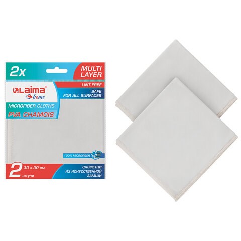 Салфетка из ИСКУССТВЕННОЙ ЗАМШИ, КОМПЛЕКТ 2 шт., 30х30 см, АВТО/ДОМ, "CHAMOIS" для полировки, стекла, оптики, очков, 200 г/м2, LAIMA, 607788