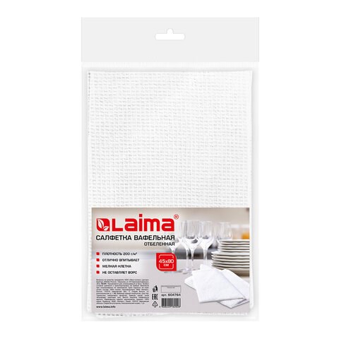 Салфетка ВАФЕЛЬНАЯ отбеленная, 45х80 см, плотность 200 (±10) г/м2, европодвес, LAIMA, 604764