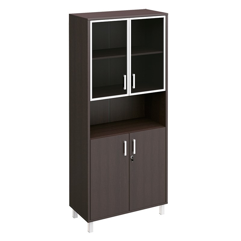 Шкаф для документов стекло в рамке + ДСП с замком + ниша