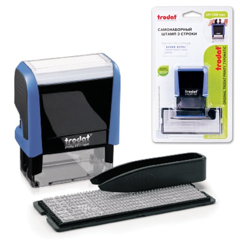 Штамп самонаборный 3-строчный, оттиск 38х14 мм, синий без рамки, TRODAT 4911P4/DB, КАССА В КОМПЛЕКТЕ, 4911/DB