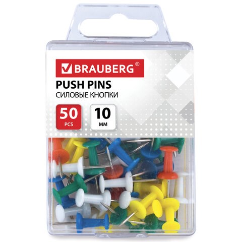 Силовые кнопки-гвоздики BRAUBERG используются для крепления бумаги на пробковые и фетровые доски, а также на другие поверхности.