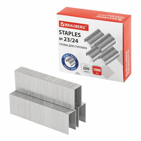 Скобы для степлера №23/24, 1000 штук, СВЕРХПРОЧНЫЕ, от 110 до 200 листов, BRAUBERG, 221165