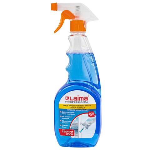 Средство для мытья стекол и зеркал LAIMA PROFESSIONAL эффективно для мытья оконных стекол, витрин, зеркал, автомобильных стекол, кафеля, хрусталя, фарфора, фаянса, для протирки экранов телевизоров и мониторов.