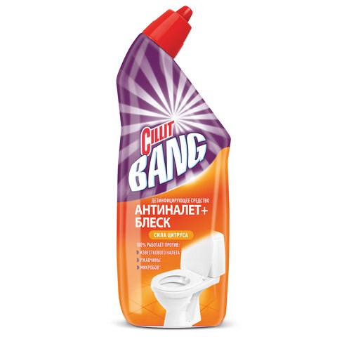 Средство для уборки туалета CILLIT BANG удаляет 100% известкового налета и ржавчины, эффективно очищает поверхность от загрязнений и придает аромат свежести и чистоты.