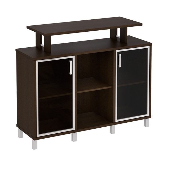 Стеллаж низкий с надстройкой и стеклянными дверками