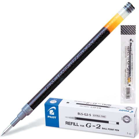Стержень гелевый PILOT, 110 мм, ЧЕРНЫЙ, узел 0,5 мм, линия письма 0,3 мм, BLS-G2-5