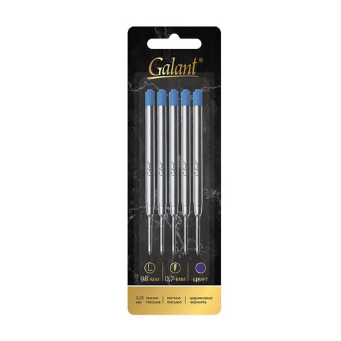 Стержень шариковый тип PARKER, СИНИЕ, КОМПЛЕКТ 5 ШТ., пишущий узел 0,7 мм, блистер, GALANT, 170388