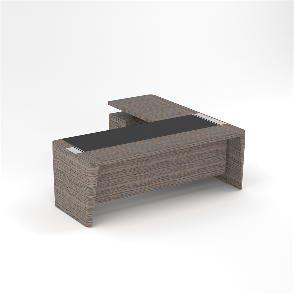 Стол для руководителя левый с кожаным бюваром, приставкой на малой тумбе и фронтальной панелью