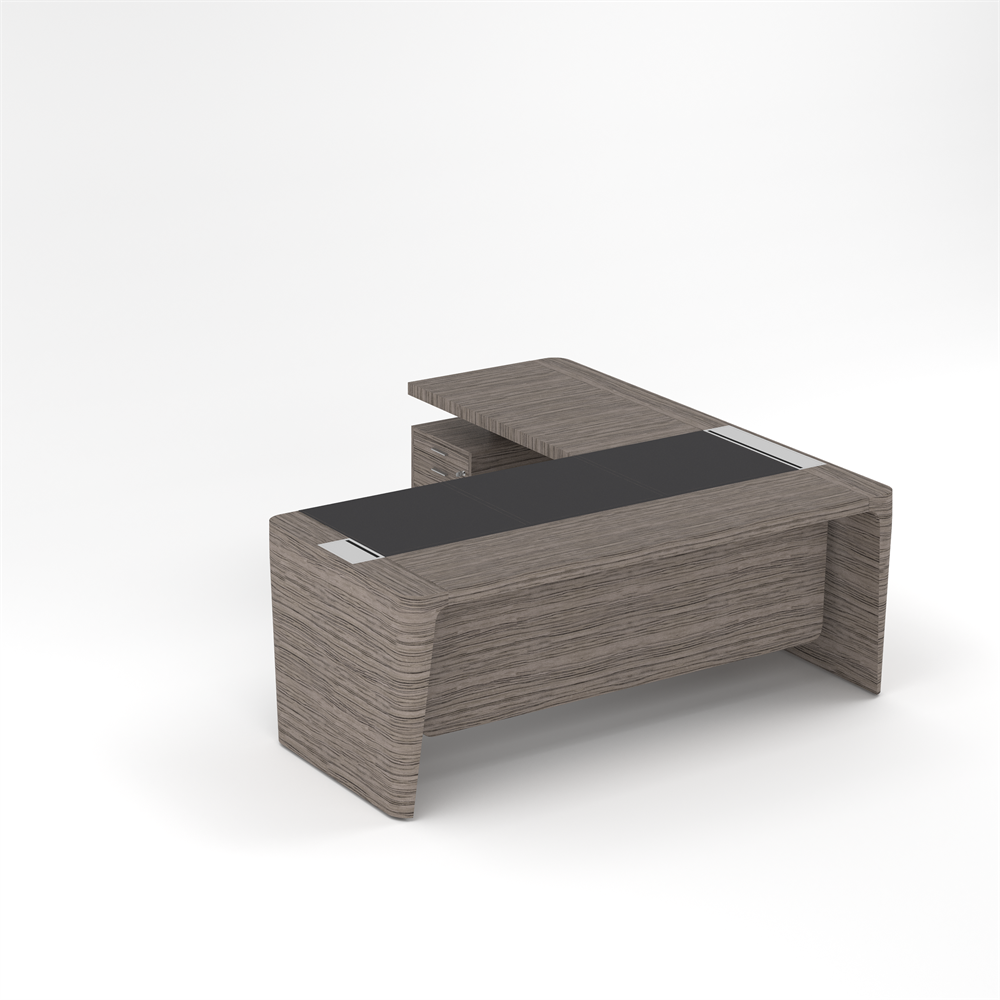 Стол для руководителя левый с кожаным бюваром, приставкой на малой тумбе и фронтальной панелью
