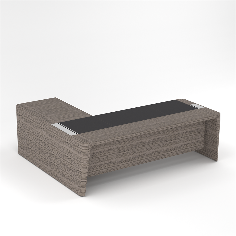 Стол для руководителя левый с кожаным бюваром, приставкой на малой тумбе и фронтальной панелью