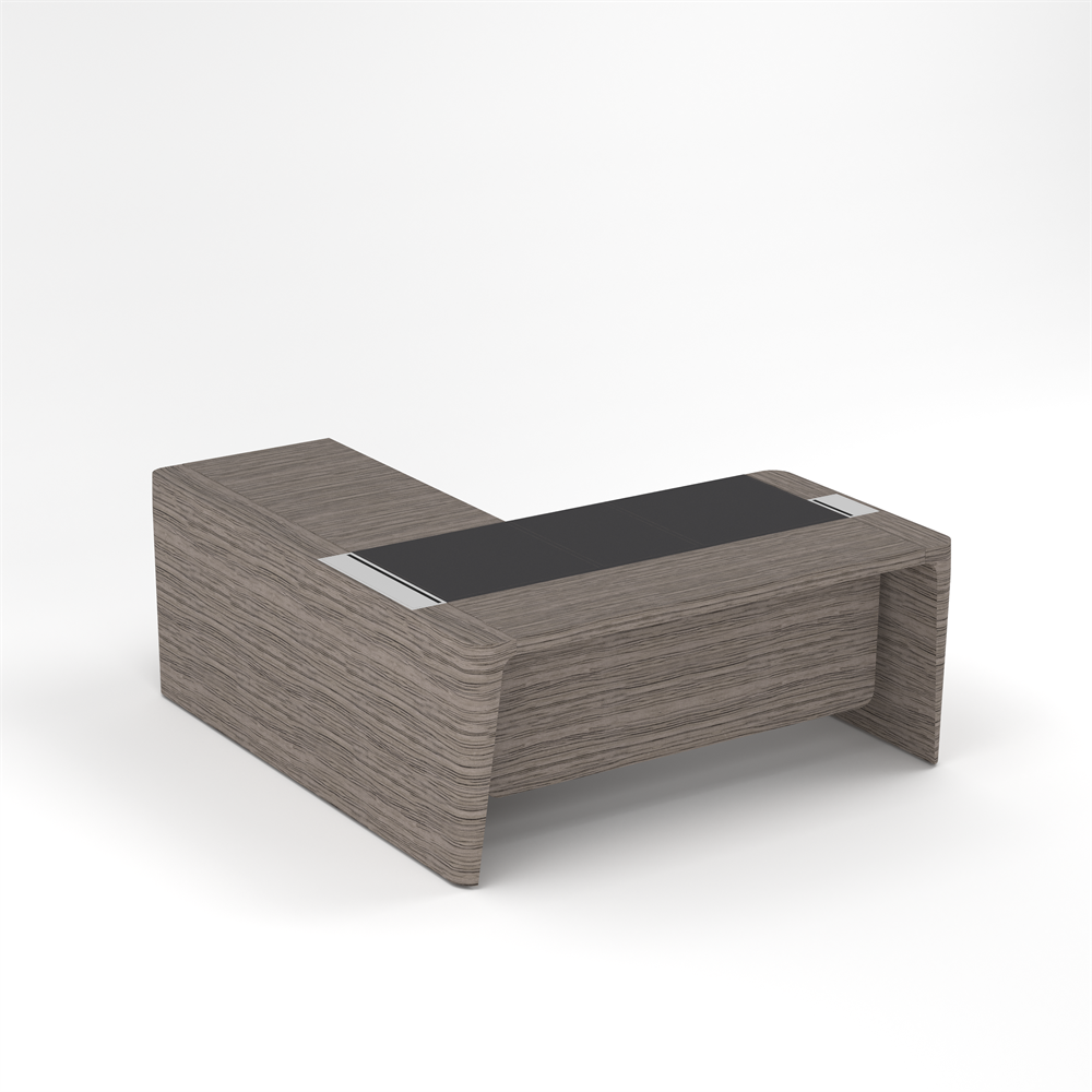 Стол для руководителя левый с кожаным бюваром, приставкой на малой тумбе и фронтальной панелью