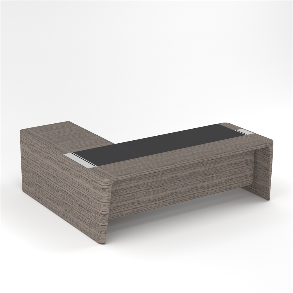 Стол для руководителя правый с кожаным бюваром, приставкой на малой тумбе и фронтальной панелью