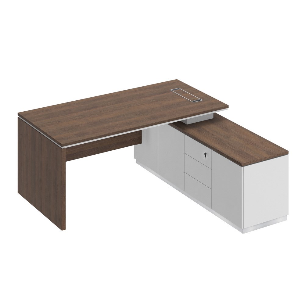 Стол руководителя эргономичный на опорной тумбе левый