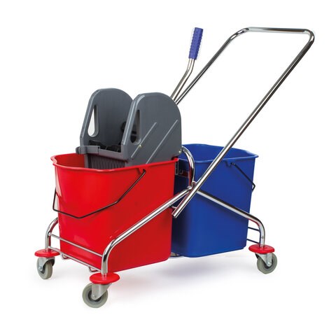 Тележка уборочная BRABIX, 2 съемных ведра 25 л, механический отжим, металлический каркас, 601499
