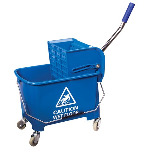 Тележка уборочная BRABIX, ведро 20 л, механический отжим, универсальная для ОФИСА/ДОМА, синяя, 601497