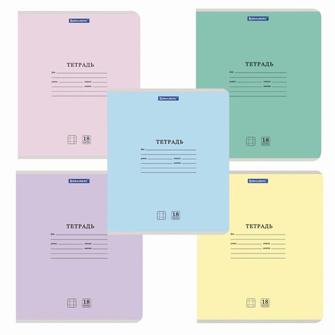 Тетрадь 18 л. BRAUBERG "КЛАССИКА NEW" клетка, обложка картон, АССОРТИ (5 видов), 105695