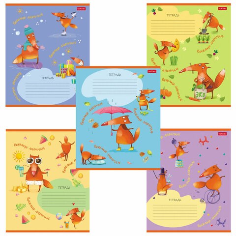 Тетрадь 18 л. HATBER клетка, обложка картон, "Fox Rules" (5 видов в спайке), 18Т5В1