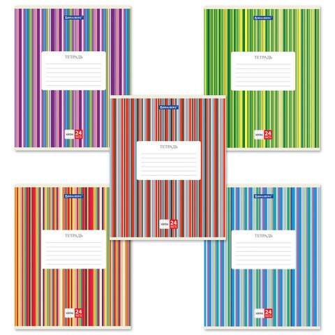 Тетрадь 24 л. BRAUBERG, клетка, обложка картон, ПОЛОСКИ, 401863