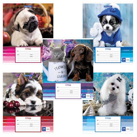 Тетрадь 24 л. BRAUBERG линия, обложка картон, "ЗАБАВНЫЕ ЩЕНКИ", 403585