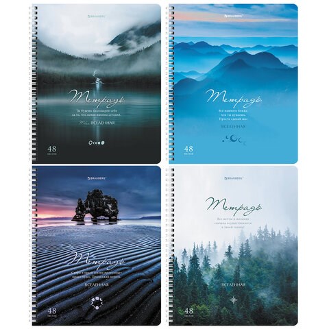 Тетрадь А5 48 л. BRAUBERG, гребень, клетка, обложка картон, "Nature" (микс в спайке), 404340