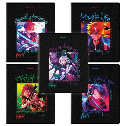 Тетрадь А5, 48 л. BRAUBERG, скоба, клетка, глянцевый лак, "Anime" (микс в спайке), 404348
