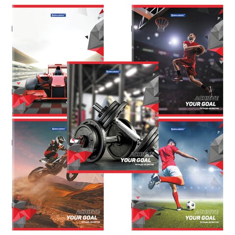 Тетрадь А5 48 л. BRAUBERG скоба, клетка, обложка картон, "Sport Club" (микс в спайке), 404363