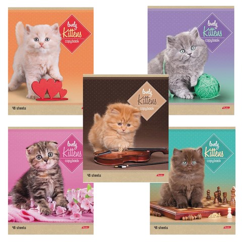 Тетрадь А5, 48 л., HATBER, скоба, линия, обложка картон, "КОТЯТА" (микс в спайке), 047012, 48Т5В2